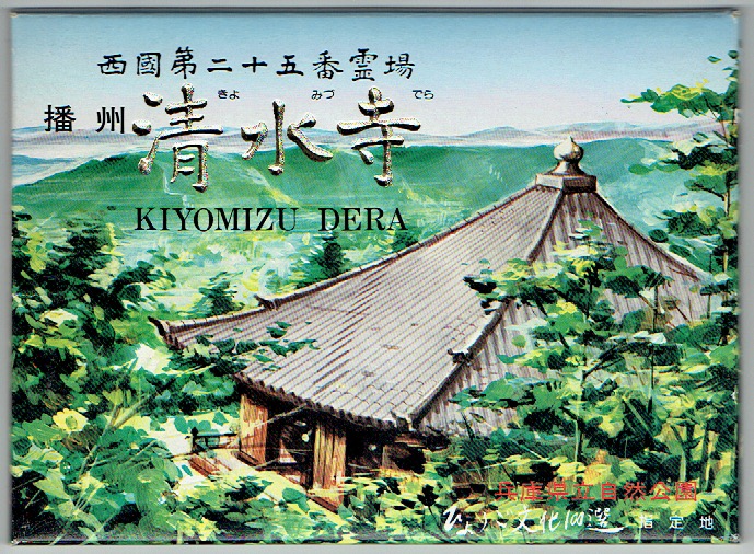 2020-09-22 西国第二十五番霊場 播州清水寺 兵庫県 20190919-014 名称: 西国第二十五番霊場 播州清水寺 地域: 兵庫県 発行時期: 1968年-1998年(推定) セット枚数: 12枚(推定) 印刷: カラー 寸法: 通信面: 赤 5桁 撮影者: 発行: 価格: 播州清水寺 特記事項: 兵庫県加東市にある天台宗の寺院。開基は法道仙人。西国三十三所霊場は徳道上人によって開かれた観音霊場です。和歌山、大阪、兵庫、京都、奈良、滋賀、岐阜の各県にまたがっています。